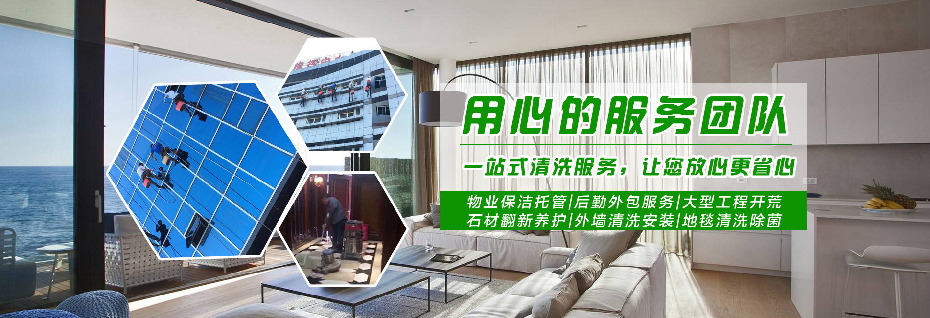 公司主營(yíng):高樓外墻清洗、玻璃幕墻清洗、門(mén)頭清洗;各種地毯清洗、除菌、消毒、防螨蟲(chóng);酒店賓館布藝沙發(fā)、真皮沙發(fā)清洗;石材翻新、拋光、晶面、防滑處理;大型工程開(kāi)荒保潔、新房保潔等。
